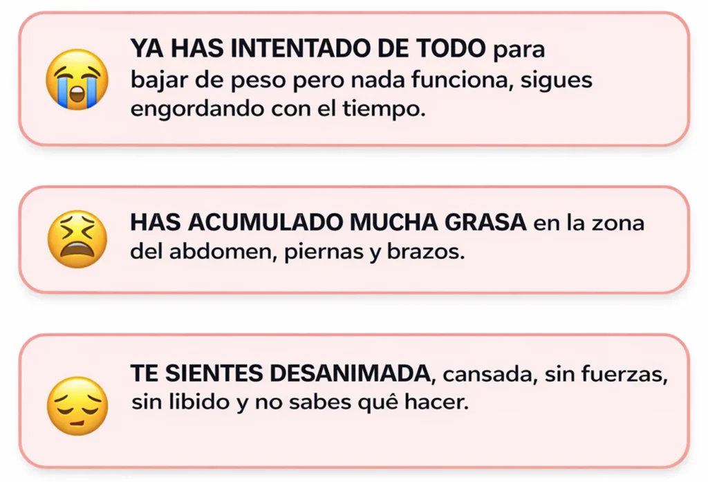 👉 Es un método estratégico que actúa directamente en la raíz del problema: el desequilibrio hormonal que hace que aumentes de peso, retengas líquidos y no logres adelgazar.